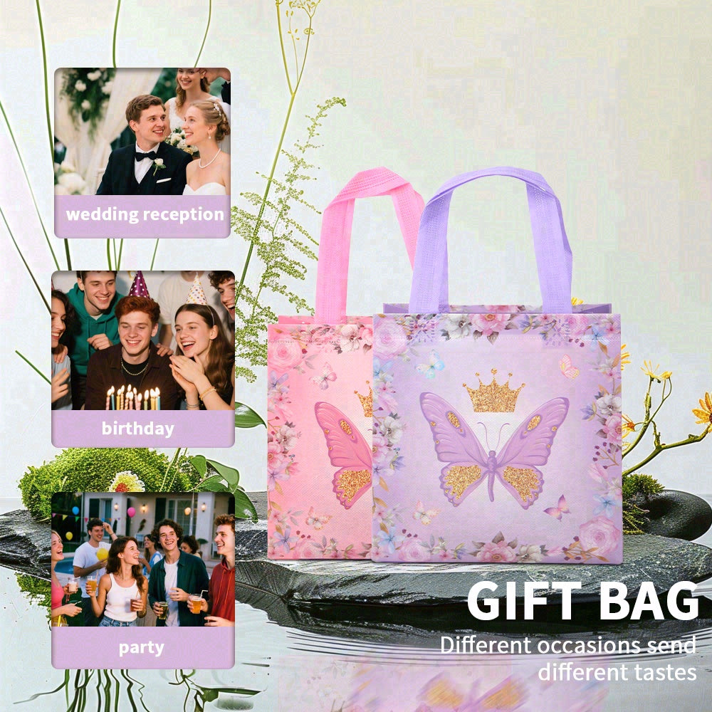 24/48 Pcs Spring Butterfly Themed Gift Bags, Reusable Tote Bags, Perfect for Birthday Parties, Weddings, Baby Showers, Mother’s Day and Valentine’s Day